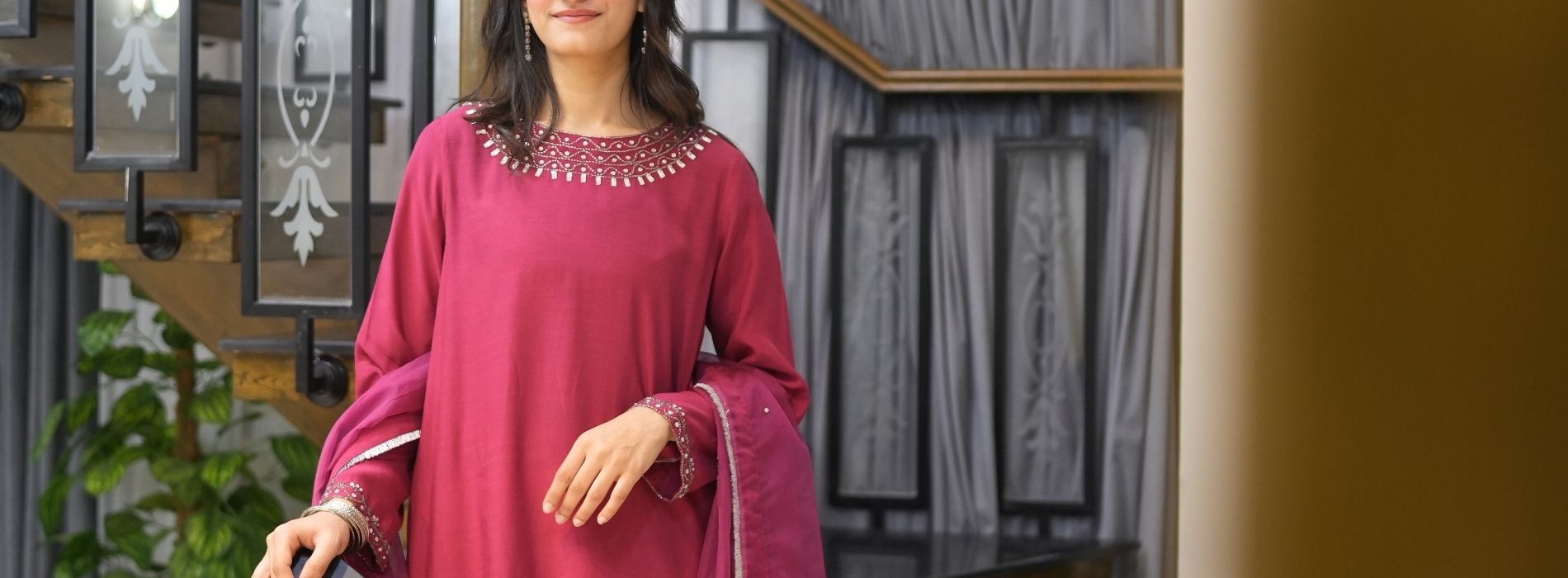Burgundy velvet two-piece
